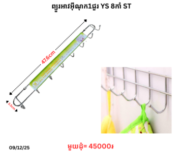 ព្យួរអាវអ៊ីណុក1ជួរ YS 8កាំ ST