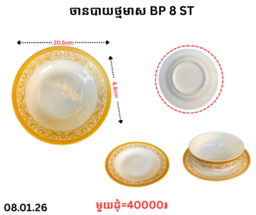 ចានបាយកញ្ចក់អង្កាញ់ BP 8.5 ST