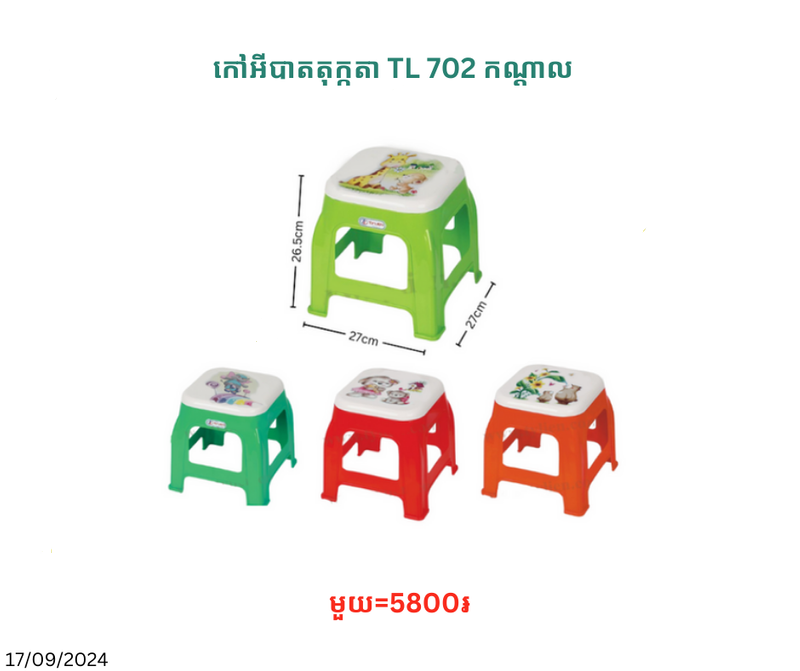 កៅអីបាតតុក្កតា TL 0702 កណ្ដាល January 3, 2026 Posted in 5800, TL, កៅអី, កៅអីកណ្ដាល, កៅអីកណ្ដាល TL Barcode : 8936082380025